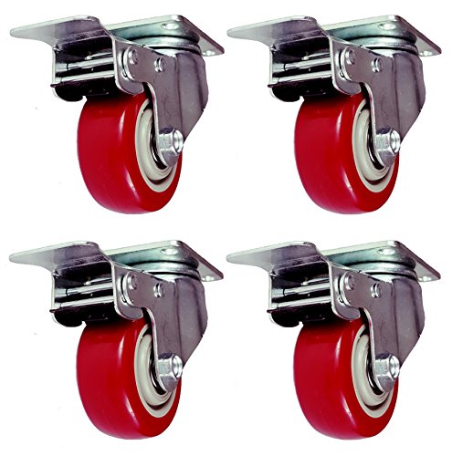 - Product Name: 4 Pack Caster Wheels Swivel Plate Stem Break Casters On Red Polyurethane Wheels 880 Lbs (3 inch with brake)