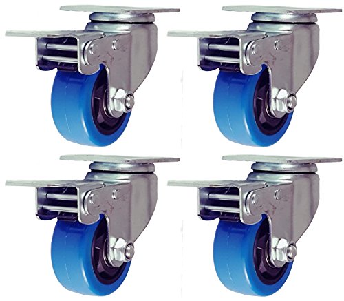- Product Name: 4 Pack Caster Wheels Swivel Plate Stem Break Casters On Blue Polyurethane Wheels 880 Lbs (3 inch with Brake)